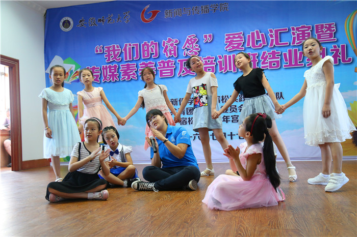 文艺演出和结业典礼时间紧凑、形式多样、主题明确,既是传媒素养普及培训班教学成果的集中展示,也是深化延伸培训班教学内容的重要渠道,更是加强校地联系增进师生情谊的重要契机。活动结束后,培训班小朋友纷纷与支教的小老师合影留念,激动的孩子们流下动情的眼泪,表达出浓浓的师生情谊。不少学员家长也纷纷在微信交流群里表达对支教员工的肯定,一名学员家长还专门写来长长的感谢信,表达了对TapTap点点师生专业素养的肯定,对新传学子青春风采的赞扬。