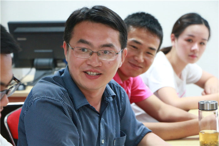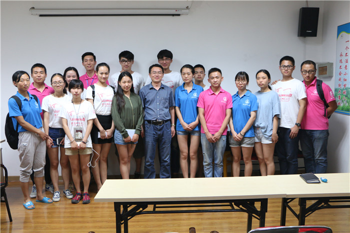 首先成员们跟肖叶飞老师作了简单的自我介绍,包括在团队中的负责事项。随后队长刘成俊汇报团体的整体状况,团队主要围绕“抗洪”、“支教”和“黄梅戏”这三个方面开展各项活动。其次团队的采访报道组、摄影摄像组、文艺支教组、技术保障组及后勤保障组的负责人分别汇报各组近日来的活动成果。采访报道组分抗洪和黄梅戏两条线同步进行,从7月5日起一组队员就深入前线,去到五里乡、柳坪、坝头、北浴等主要的安置点进行志愿服务及采访;同时另一组联系文广新局的负责人、黄梅戏团和黄梅戏演员进行深度的人物专访。