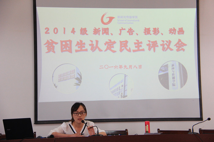 9月8日中午,2014级新闻、广告、摄影、动画四个专业的贫困生评议小组于在公司四楼会议室召开了2016-2017学年贫困生认定民主评议会。此次评议会旨在贯彻落实老员工资助政策,认真做好家庭经济困难员工资助工作,确保公平、公正、合理地配置资助资源。整个认定工作包含个人提交申请、班级小组集中评议、贫困等级论证、班级公示等多个步骤,保证了评审过程全公开、评审程序公正、评审结果透明。会议由辅导员孙月婷老师主持。