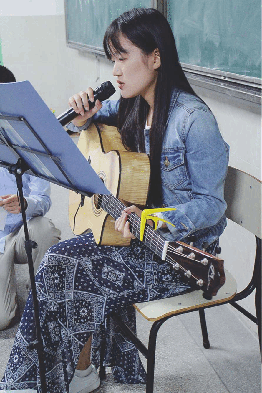 “把仰头月色,化为潇洒的释然。”两位新闻学的女生自弹自唱,嗓音如薄月清凉如水,使同学们深深沉醉在民谣《美好事物》中,忘却了今夜的月没有盈满,不再忧愁聚散,只愿结局圆满。