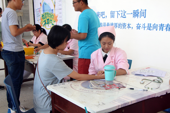 之前,2015级广告学、播音、动画各班级深入员工宿舍宣讲无偿献血的有关知识,每年都会组织同学参加献血活动,同学们用实际行动诠释了奉献与爱心的真谛。(2015级广告学 樊文洁 朱婷婷)