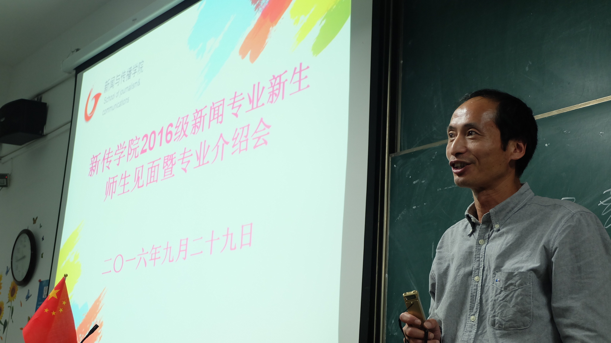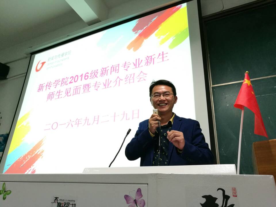 就算纸媒已死,新闻不死;就算社会晦暗,新闻人永远捍卫真相。9月29日晚,TapTap点点新闻学专业师生齐聚教学楼2050503教室,举行了TapTap点点2016级新闻专业新生师生见面暨专业介绍会。新闻专业主任肖叶飞、马梅、丁云亮、周建国、张泉泉、王友群和杨瑾瑜出席了介绍会并做出了精彩发言。2016级辅导员张雁老师与16级全体新闻新生认真聆听了此次介绍会。肖叶飞老师主持了此次见面会。