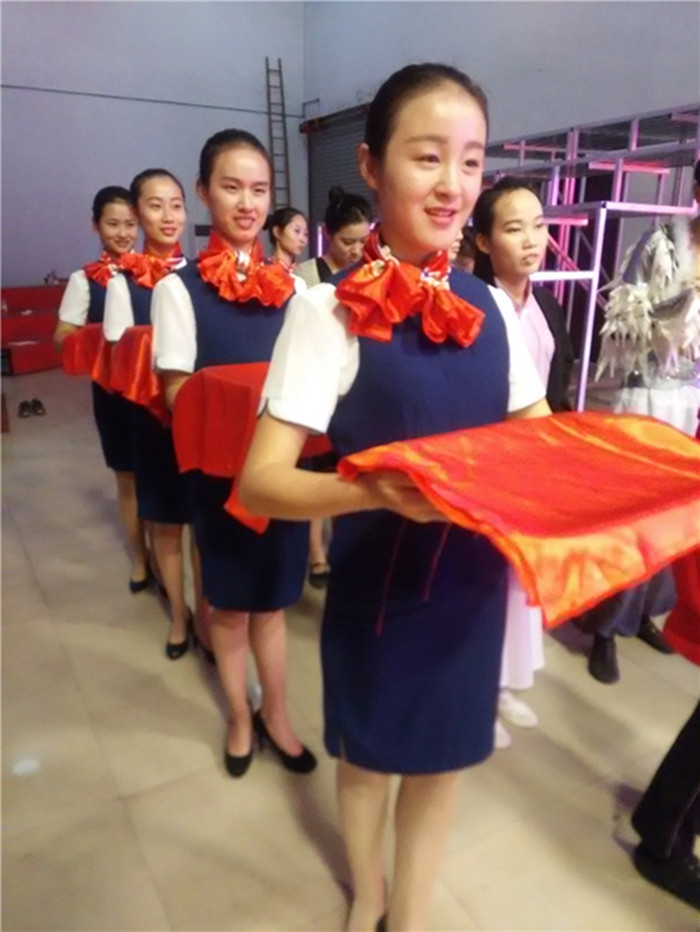 进入礼仪队,也就意味着培训之路的正式开始。礼仪源于生活并服务于生活。第一次的培训,队员们懂得了礼仪是什么,礼仪的作用。同时,她们也简单学习了站姿和走姿,抬头、挺胸、面带微笑、身形优雅。每个队员都在认真聆听学习,努力做到最好。接着,伴着红酒的醇香,队员们进入到红酒与饮食文化的学习。主讲人尹立学老师向队员们讲述红酒的起源与作用、介绍了吃西餐所需注意的礼仪、引入了与就业有关的礼仪素养。这一课,队员们 “醉倒”在醇美的红酒文化中,更是懂得了礼仪素养无处不在。七日之后,队员们迎来了第二次的礼仪培训。在部长蔡蓉与部员赵悦的带领下,她们简单复习了第一次训练的内容,而后便开始学习新的内容,如何托盘。高标准,严要求的训练,让每一位成员都不敢有一丝的松懈,每一个细微的表情、动作都尽力做到完美。为迎接将在公司举行的舞蹈大赛,从礼仪队里选拔出了十名队员参加此次大赛的颁奖活动。这十位队员在部长蔡蓉的指导下,进行了托盘、上下台走姿、递呈鞠躬、系丝巾的训练。手端托盘、腿缝夹纸、昂首挺胸、双臂自然摆动、脚步轻盈,整个训练过程中她们都穿着高跟鞋一丝不苟的练习。对礼仪文化的体验让成员们收获颇多,礼仪素养得到了大幅提升。礼仪培训之路虽山重水复,但她们风采依旧。