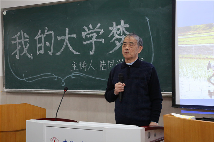 讲座上,陆教授寄语新生,强调“梦想最重要的是圆梦,将梦想变为现实”。结合几十年的亲身经历,他认为一个老员工应该从“夯实基础专业知识”、“树立服务的社会责任感”、“培养坚毅的学习、工作作风”、“培养良好的读书风尚,发展个人的兴趣爱好”四个方面要求自己。针对社会责任感的问题,他指出青年人的远大理想应当建立在是否有正确人生观的基础之上,知识的力量不仅仅用于丰富自己的阅历,更应该服务于社会。最后,陆教授介绍了安师大数学系86届毕业生江涛的事迹,警示同学们失败乃成功之母,远大的理想要与坚强的意志相配,年轻人在困难与挫折面前要敢于坚持。在师生互动环节中,陆教授耐心地回答了同学们提出的问题,赢得了同学们阵阵热烈的掌声。