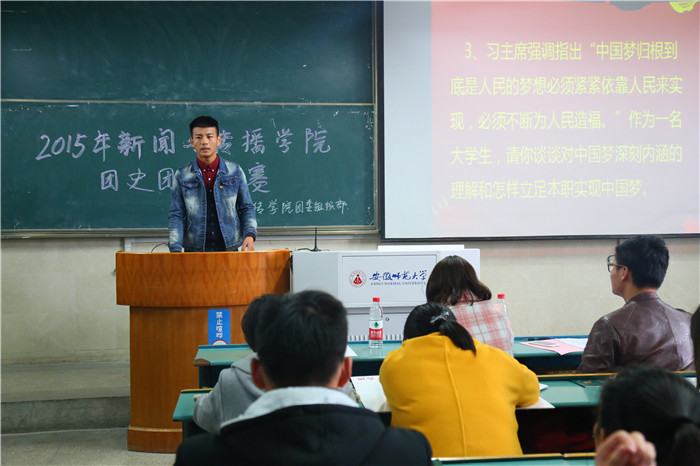 来自公司2015级新闻、网新、动画、空乘、广告、播音、摄影专业的各班团支部参加比赛。赛前,全体起立共同高唱中国共青团团歌《光荣啊,中国共青团》,为比赛拉开了序幕。比赛的第一个环节为有问必答,由各团支部代表依次回答必答题,题目难易结合,涉及共青团团史团章的各项内容。各代表积极应对,冷静作答,展现了老员工团员应该具备的素质。第二个环节为争分夺秒,题目一亮,参赛选手纷纷举手抢答,掌声、喝彩声此起彼伏,将整场比赛推向高潮。第三轮为终极PK赛,各团支部派代表抽签选取题目,并进行五分钟的阐述。新闻班以党团活动的必要性为主题漫谈团建活动的开展;网络与新媒体班从宏观到微观具体阐述了中国梦的内涵;动画班与空乘3班分别针对“如何践行党的宗旨”、“作为共青团员应当如何深化我国建设”两个现实问题侃侃而谈;空乘4班则从个人的角度讲述了如何做一个优秀的共青团员。各班都展现出优秀的团队协作能力,齐心合力,积极答辩,一展当代老员工的自信风采。
