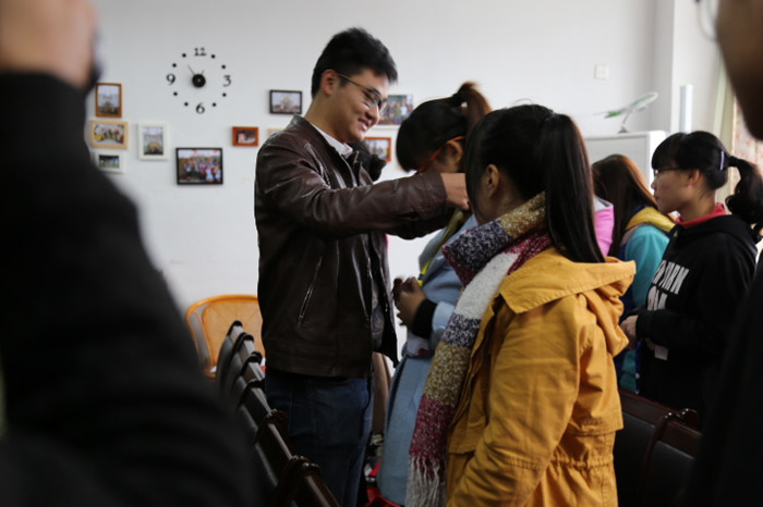 伴随着充满活力的音乐《Waving Flag》,郁悦、孙月婷为组委会主要成员颁发聘书,朱子钰,鲍凌峰为新进成员佩戴工作证,表达了老师们对组委会的期待。