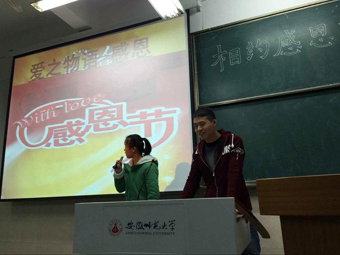 11月18日晚,2015级广告学专业“相约感恩”主题班会在2050302教室举行。班会有辅导员孙文老师主持,2015级广告学专业所有同学参加了此次班会。