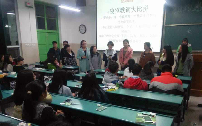 班会的高潮是歌词接力活动。活动由主持人出题,每个寝室选出一名代表参赛,歌曲必须与感恩相关;对于失利的宿舍要打电话给自己的父母、恩师、同学或者伙伴,通过最真挚的语言表达自己的感谢与感激之情。经过激烈角逐,在同学们一阵畅意的笑声中,318寝室及320寝室最终最后获得在现场表达的机会。同学们打电话给自己的恩师,或打电话给自己闺蜜,字句间或情真意切或淘气顽皮,但都充满了久别的思恋与按捺已久的感激。