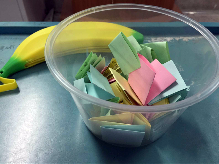 最后,每位同学都在纸条上写下自己未曾实现的愿望并由主持人随机发放给每位同学,而拿到其他同学纸条的人就要与其一起完成这个愿望。同学们的愿望各式各样,或要求凌晨的一条温暖短信,或要求一个长长的拥抱,或要求一通真诚的电话......最终,同学们每个人都带着一个待完成的愿望离开了班会现场。
