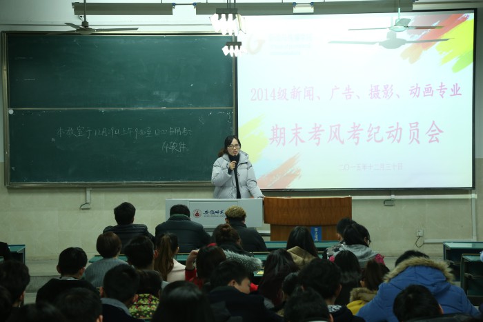 儒雅学风,千年古训,诚信为本,无悔于己。12月30日下午,TapTap点点 2014级新闻、广告、摄影、动画四个专业的全体员工在教学楼2010505分别召开了诚信教育主题班会暨期末考试考风考纪动员大会,会议由辅导员孙月婷老师主持。