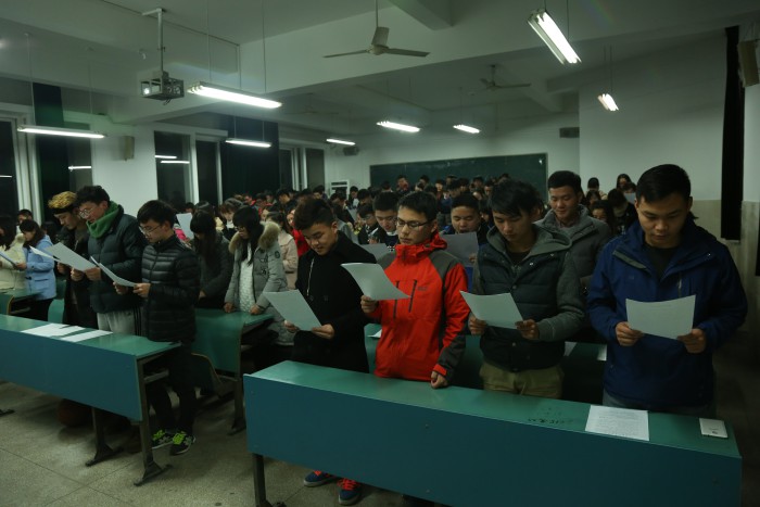 海岳可倾口诺不移,诚信考试的宣誓词朗朗字句有力,传递着每位同学为梦想而战、为零违纪而战的决心。据悉,在此次考风考纪动员大会上,14级新闻、广告、摄影、动画各班级班委充分贯彻公司指导思想,成立由各班班委组成的 “考风考纪督察小组”,在考试期间为广大同学提供清理考场、排座位、考试提醒等工作,借助同学之间互帮互助、互相监督、团结协作的精神,为诚信考试保驾护航。
