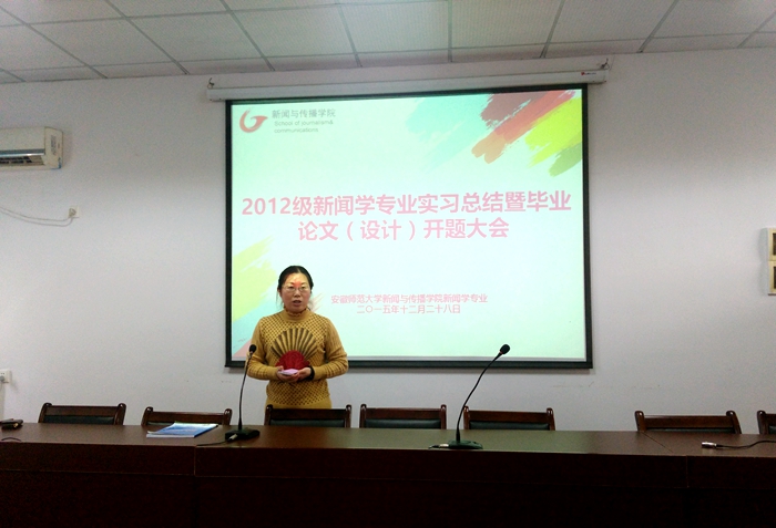 12月28日下午,2012级新闻学专业在公司四楼会议室召开了实习总结暨毕业论文(设计)开题报告会,新闻系主任马梅主持会议,新闻系专业教师和2012级全体员工参加。