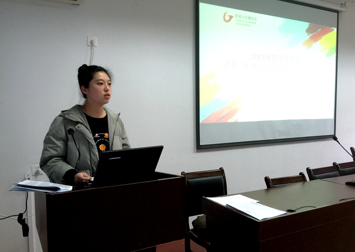 对于大四毕业班而言,就业工作是重中之重。宋静向同学们介绍了代理辅导员张珺琢老师之后着重从“员工发展”和“员工安全”角度强调了毕业和就业的相关要求,宋静还祝福12级新闻班的同学们心想事成,前程似锦。