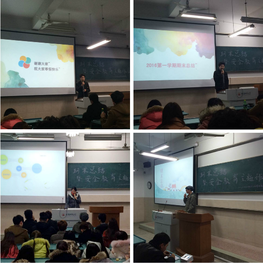 生活委员姚琪在会后表示,此次班会,让同学们总结了本学期的生活与工作,汇报了成绩,找到了差距,更重要的是明确了自己安全防范能力的不足,认识到了安全教育的重要性。(文/张书朋 图/宗祺、蒋天琪)