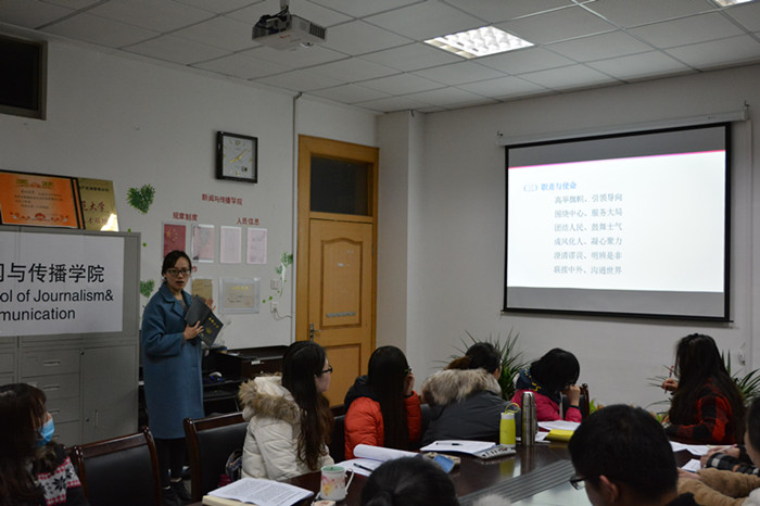 会前,大家认真观看了中央电视台新闻联播关于习近平考察中央新闻单位和主持召开新闻舆论工作座谈会的视频新闻。会上,指导老师孙月婷首先传达了20日公司党委中心组扩大会议上公司党委书记胡靖对讲话精神的细致解读。胡靖在会议上指出,学习讲话精神关键在于增强看齐意识、指导办学实践,对于建设一流新闻公司、培养卓越新闻人才具有至关重要的指导意义。习近平总书记对于新闻舆论工作者职责和使命的48字论述同样是对新闻专业学子讲党性、强本领的具体要求,高校新闻专业教育是贯彻习近平“2·19”讲话精神的基础工程、源头工程。作为“准新闻人”,新闻学子必须在第一时间学习讲话精神并在学习和实践中落小、落细、落实,努力成为德才兼备、让党和人民放心的新闻从业者和马克思主义新闻观的传播者、践行者。