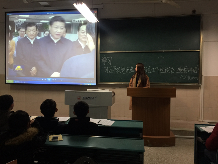 2月26日晚,15广告、动画、播音专业的同学们在辅导员老师孙文的带领下认真学习了习近平总书记在党的新闻舆论工作座谈会上的重要讲话精神。