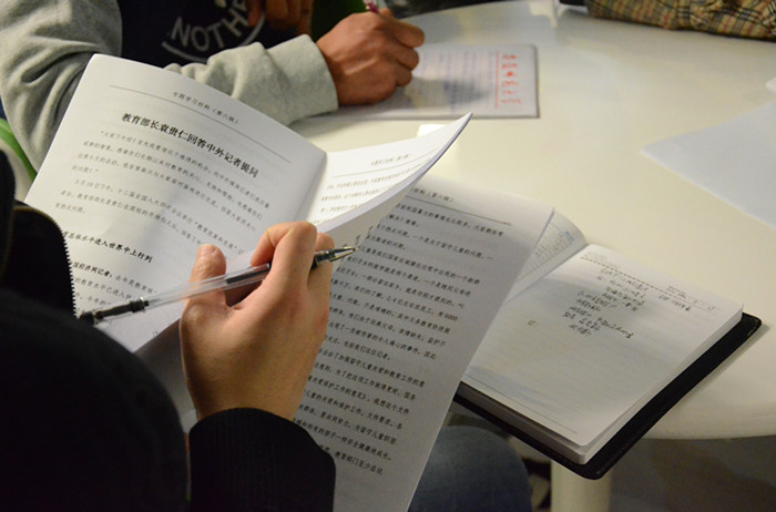 3月13日晚,花津校区的校园文化创意中心拥挤而温馨,马克思主义新闻观学习社的成员们在这里围坐一堂,专门成立了学习两会时政热点、学习党章党史的“双学小组”,紧扣两会热点发散思维,情系国计民生碰撞思想。本次交流会由马观学习社社长何修豪主持,指导老师孙月婷与社员从两会上的教育部长袁贵仁答记者问谈到高等教育改革、高校人才培养模式的转型、考研和人生道路的选择问题等,气氛热烈,妙语迭出。