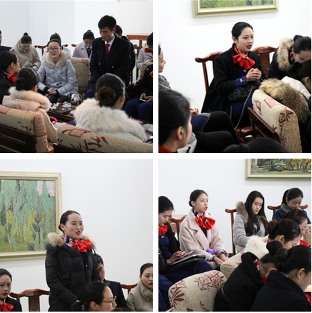 空乘1班、2班四级最高分的同学孙蓉、苗迪分享了自己通过四级的学习经验与四六级考试的方法和技巧,对接下来在六月报考四级的同学有了很大的帮助;空乘4班团支书孙国耀同学代表全班入党积极分子向同学们承诺,以务实的态度和党员是永不换届的班委的庄严承诺,建设更加优秀的班集体;空乘2班班长李梦青同学向大家宣传发动雷锋日活动以及身边的好人好事。例如敬老院做义工、献血、让座、捐献衣物、照顾流浪小动物等等。空乘4班班长孙慧霞同学总结了班级在上学期的成绩及汇报了班级工作情况,激励同学们再接再厉在新的学期取得更优越的成绩,并承诺全体班委会为了更好地帮助与服务同学而不断努力。空乘3班黄笑冬同学则分享了自己参加兼职的经历感慨,光鲜亮丽的表象背后则是不为人知的艰辛,并以自己亲身经历的两次兼职经历深刻感受到,只有自己付出更多的努力和艰辛才能体悟到生活的不易,也才能更加感受到学习机会的宝贵。