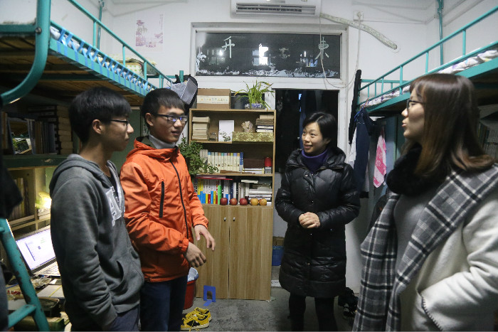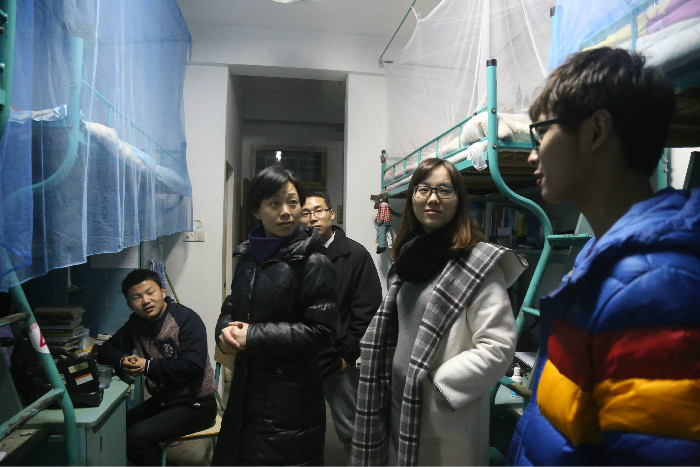 在检查的过程中,员工们主动与领导老师交流自己最近的学习和生活状况。宋静对现在正在创业的员工表示支持和鼓励,她认为在“大众创业,万众创新”的时代,员工们应当主动适应社会新潮流,同时要兼顾学业,合理分配创业和学业的时间;对于一些同学考研的选择,她给予了充分肯定,勉励同学们一定要提前做好规划,耐得住寂寞,静得下心。此外,宋书记还重点询问了同学们生活中遇到的困难,关切叮嘱一位韧带拉伤的同学要注意休息,如果有需要帮助可及时向公司反映,公司会尽可能地给予支持与帮助。每到一处,领导老师除了了解员工的生活、学习情况,还重点排查了宿舍的安全隐患,排查有无晚归不归,有无使用违规电器,有无私拉电线,接线板使用是否规范等。