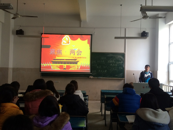 为深入学习“两会”精神,增强当代老员工的思想政治理论素养,3月20日下午,14广告班开展了“深入贯彻学习两会精神”的主题班会,会议由团支书杨添凯主持,辅导员孙月婷与全体同学共同参加。