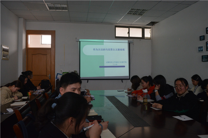 在座谈会上,丁云亮老师以生动幽默的方式为同学们讲解了“方法”“方法论”以及“马克思主义新闻观”的相关概念,并指出“作为新闻工作者,我们必须明白作为指导思想的马克思主义新闻观究竟是什么。”在把这些晦涩难懂的概念以最简单易理解的方式解释后,老师又指出“马克思主义新闻观是一种知识体系,是一种历史科学,更是一种实践指导”,在一系列的贴合实际的例子中,又一次加深了同学们对于马克思主义新闻观的认识与理解。对于这个时时刻刻存在在意识中的观念,同学们似乎又有了新的看法。