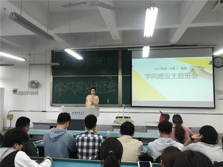 4月16日中午11点40分,2017级新闻学(含中英)、播音专业在行知楼2070201教室召开了学风建设主题班会,由辅导员张虹老师主持,全体同学参加。