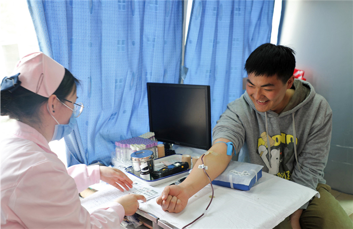 在献血过程中大多数同学从容淡定,但也有部分同学由于是第一次献血而有些许紧张,在工作人员的宽慰及同学们的自我调节下最终顺利完成了献血活动。献血完成后,工作人员们为献血学子发放红枣、糖水等营养品。手持献血证的同学脸上洋溢着的灿烂笑容感染着在场的每一位同学。