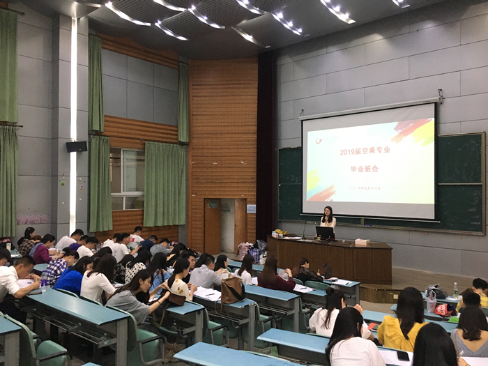 2019年5月16日下午,2015级空乘专业所有同学从五湖四海重新汇聚一堂,在行知楼2010105教室召开毕业班主题班会,会议由辅导员老师余梦雅主持。班会共有考勤情况通报、学位审核情况通报、就业工作情况通报、征兵专项动员、安全文明教育和毕业档案信息填写等六项主要工作。