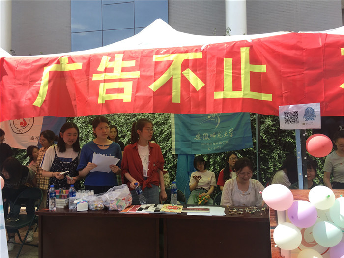 “广告不止,不止广告。”这是广告学专业此次展览的主题。展出的主要是15级和16级员工的优秀获奖作品和专业赛事的设计产品,包括平面广告和文案策划等多种类型,展示了实物、手绘等形式丰富的创意作品。广告学子发挥创意,将广告特色融入游戏环节,以扎气球竞猜广告语和考验广告词储备的方式,结合专业特点,引得员工们纷纷驻足参与,新颖独特。在观展过程中,领导老师驻足观看每一份精彩作品,与展摊员工进行互动交流,从创意设计到实践过程,进行了讨论,热情地参与到现场的活动中,对员工的新颖布置表示了赞许和鼓励。