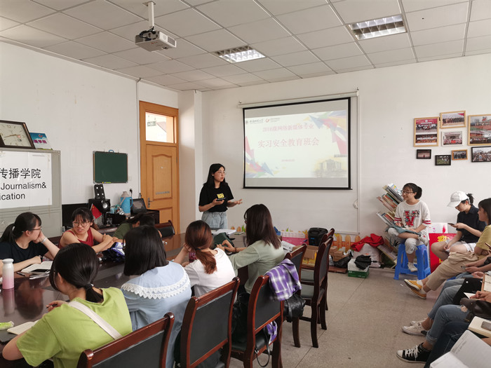 6月3日下午,2016级新闻、网新专业就暑期考研和实习留校的安全教育召开了主题班会。辅导员张雁老师主持,2016级新闻学专业全体同学出席。