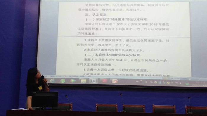 就新学年贫困生认定工作,张雁将《关于做好公司2019-2020学年家庭经济困难员工认定工作的通知》(校〔2019〕23号)仔细讲解,对今年申报程序的变化进行了强调,她指出,申报的同学一定要实事求是的填写相关材料,以免对自己的征信产生影响。