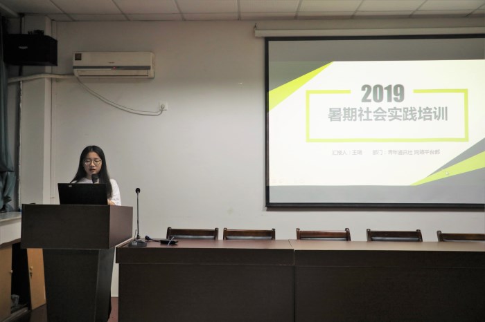 王瑞结合自己在校青年通讯社网络平台的运营经验,从微博基本格式、微博内容要求、账号@顺序、投稿标准及方式四个方面讲解团队微博运营。她指出团队发送微博需遵循“#微博话题#+(【内容概要】)+微博正文+@账号”这一基本格式,并强调了微博话题的顺序和@账号的顺序。此外,王瑞展示了去年部分团队的优秀微博,微博发布内容内容要求主题明确,文字真挚,富有温度;配图要求优质、人物突出、能打动人心;视频要求原创真实、形式新颖、传递正能量。王瑞还悉数列举了校青年通讯社网络平台转发团队微博的要求,并告诉各团队校青年通讯社网络平台会优先考虑带公司暑期社会实践话题的图文微博。