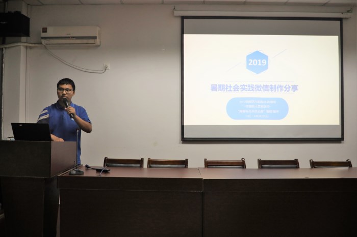 赵柳明先简单介绍了公众号注册、维护和相关配件的制作。他强调微信公众号的运营是决定能否投稿成功的关键,在微信封面可选取有感染力的队内拍摄图片自主制作;标题拟定需恰当、言简意赅;内容可采用图文结合、视音结合以及H5和海报等方式;排版设计可借助135编辑器、秀米等网页完成,并注意色彩搭配和“动静结合”。赵柳明还提供了“TapTap点点官方网站”、“安徽师大共青团”、“青春三下乡” 等多个投稿渠道。