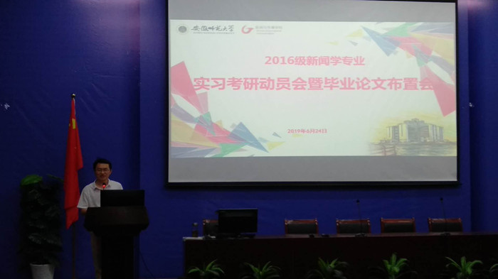 6月24日下午,2016级新闻学专业在2010307召开了实习动员大会暨毕业论文选题交流会。本次会议以实习安排、实习与考研的关系和毕业论文选题开题的要求为主题,公司副经理沈正赋,新闻学专业教师袁立庠、丁云亮、周建国、韩雪松、张泉泉、王友群、王晓玲、马原、赵忠仲、桂万保、杨瑾瑜、陈接峰,以及辅导员张雁到场,会议由新闻学专业主任肖叶飞主持。