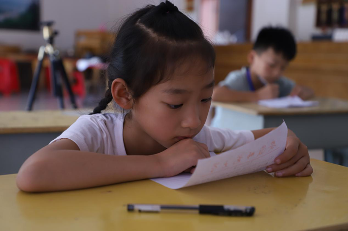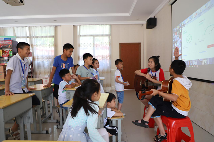 “来,这句该你唱啦”,这是支教的第一节音乐课,第一首歌便是《虫儿飞》。教授音乐课的实践队员——露露老师将话筒递给了班里的小霸王——皮皮。皮皮真的姓皮,也确实是最皮的员工,几次三番地扰乱课堂秩序,亮亮的眼睛一副天不怕地不怕的样子,当话筒传到他的手上,大家都以为即将迎来搞怪歌声的时候,皮皮却一把推开了话筒,将头埋了起来。