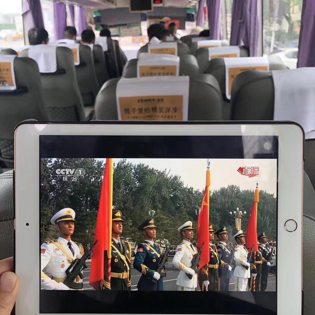 参与公司组织观看活动的耿文英谈道:“我站在幕前,想捕捉好镜头,却常常被阅兵的气势转移注意力,也经常错过同学们的惊呼和鼓掌。那种欢呼,不仅仅是因为阅兵队伍的整齐、帅气,更是一种民族认同和骄傲。其实让我更有感触的是,身边到处都是《我和我的祖国》,大家都真心祝福,我很开心用镜头记录了师大某个角落的今天。”