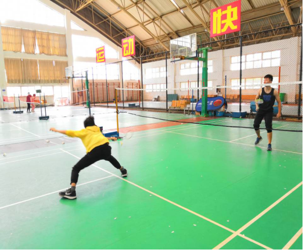 阳光明媚的早晨,同学们也热情洋溢。一早进入体育场,开始赛前热身。轻松愉悦,谈笑风生,能够从他们身上看到的青春风采。文体委员安排好羽毛球与篮球赛程,羽毛球组采取五局三胜制,每人打满十一个球就获胜;篮球组男生居多,每个人都跃跃欲试,渴望一展风采。