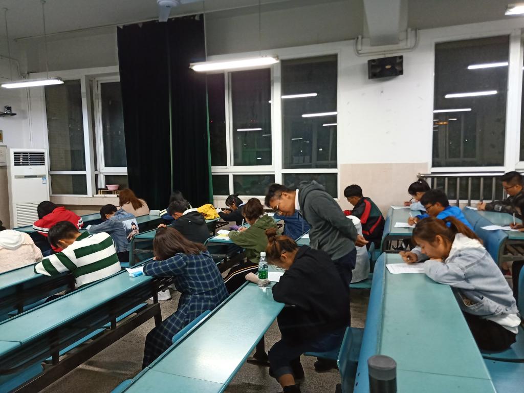 10月16日晚,第二轮笔试环节分别在行知楼2050202和2050402如期举行。此次笔试试题是马星宇亲打磨而成,分为填空题、简答题和情景设置题三部分,不仅考验员工的策划水平,还要求他们细心留意班级乃至公司的各项事务。另外,试卷还为宣传委员单独设置了一道写作题,通过写宣传语和稿件开头来考核。考试开始前,导生要求大家上交手机和背包,严格考场纪律。笔试从8点开始共35分钟,考场上,每位同学都认真的撰写答案,在考核中全力以赴。