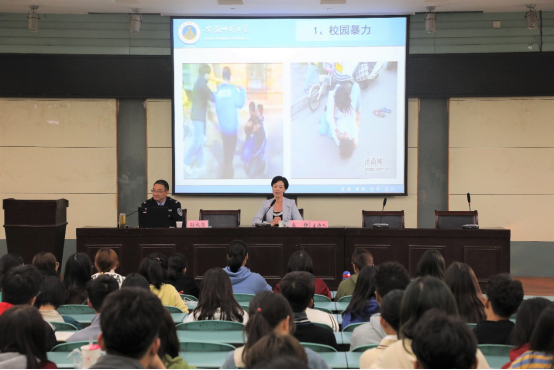 讲座中,孙成岗结合内容丰富的PPT,从校园暴力、交通安全、财产安全、食品安全、消防安全、溺水事故、宿舍安全、实验室安全等八个方面向同学们介绍了高校校园内常见的安全问题,重点强调了财产安全、交通安全、消防安全和宿舍安全。他通过列举高校真实案例、播放典型案例视频等方式提醒新生要牢固树立安全意识,自觉提升安全防护能力,做到可以识别并规避这些常见的安全风险,给自己的学习和生活以保障。他也告诫新生要严格遵守校规校纪,不要怀着侥幸心理铤而走险,在危险边缘试探,给自己带来终身悔恨。同时,他也指出,同学遇到危险不要慌张,要主动向保卫处和同学老师求助。讲座最后,孙成岗意味深长地叮嘱同学们:“要有安全意识,一个好的习惯可以让人终身受益”。十多年高校安全保卫工作的宝贵经验让孙成岗将各类风险讲得深入浅出,各类案例信手拈来,课堂上不时爆发出员工们惊叹声和笑声。讲座结束后同学们纷纷感慨受益良多。