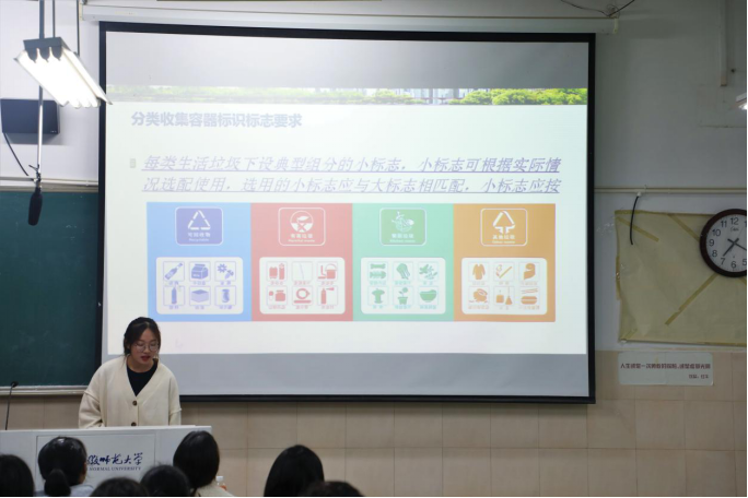 此次主题班会通过展示垃圾分类示意图、播放教学动画视频等多种形式直观系统的学习垃圾分类。针对公司现行的分类措施需分为可回收垃圾、厨余垃圾、有害垃圾、其他垃圾四类,分别对应蓝色、绿色、红色、黄色来垃圾桶进行投放。同学学习积极性、参与度高,通过班委带领学习后的小测验发现,绝大部分同学都能通过班会熟悉垃圾分类。