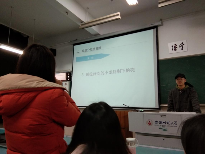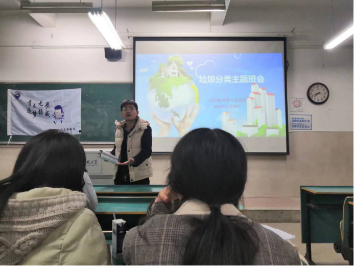 11月26日晚,2018级新闻班在2050402召开了“垃圾分类”主题班会。该班会由团支书戚梦媛主持。会前,由戚梦媛提出,要求以寝室为单位,由寝室长牵头,组织学习有关垃圾分类的知识。会上,戚梦媛先向大家展示了,在垃圾分类正式开始实行的前夜公司垃圾桶堆积如山的场景,引发了同学们的共鸣。接着便开始了垃圾分类有奖竞答活动,通过生动有趣的情景题,对同学们日常生活中会遇到垃圾分类难题一一进行了讲解。在一片欢声笑语中完成了对垃圾分类知识的学习,并对答对题数较多的寝室给予了垃圾桶、垃圾袋的小奖励。最后,又以一个小短片,帮助大家强化对“如何垃圾分类”的认识。