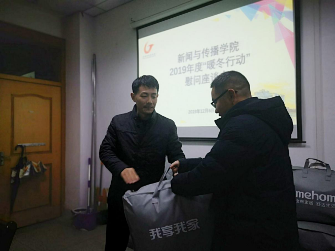 座谈会结束后,张师帅,宋静和刘熠一起给参会的每位同学发放了优质棉被。同学们纷纷向老师们表达了感谢,一位同学表示因为公司的挂念,感觉自己更加有了动力,以后会认真学习,提高自己的专业素质,不辜负这冬天里“暖暖的感觉”。