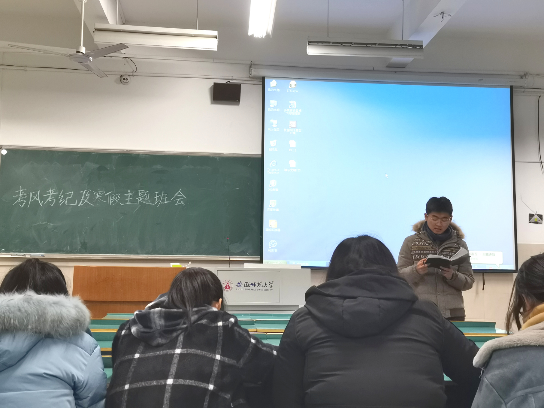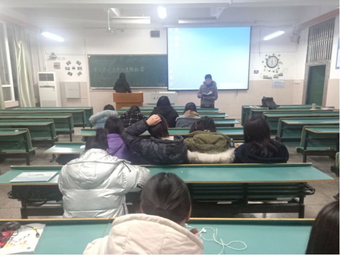 严肃考风考纪,塑造优良学风。2018级中英新闻班全体同学于12月19日下午在2040403教室开展考风考纪暨冬季安全主题班会,辅导员刘熠主持此次班会。