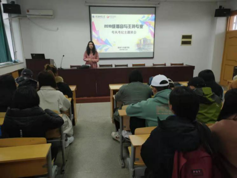 2019年12月25日,公司楼四楼会议室召开了2019级播音主持专业考风考纪主题班会,会议由辅导员李梦圆主持,全体19级播音班全体同学参会。