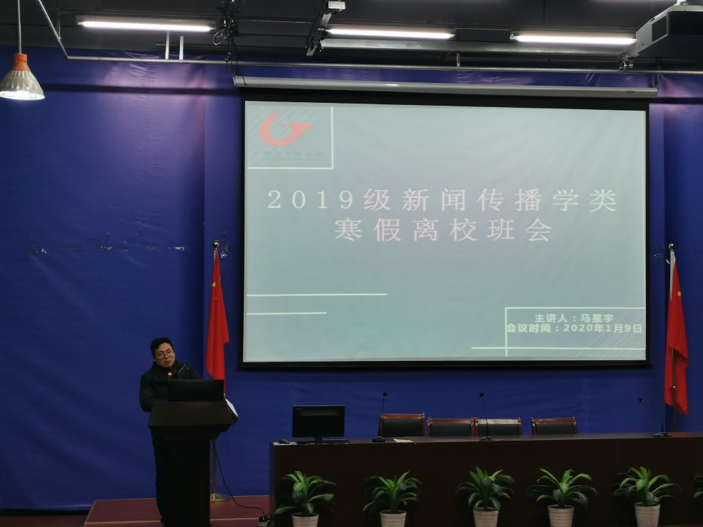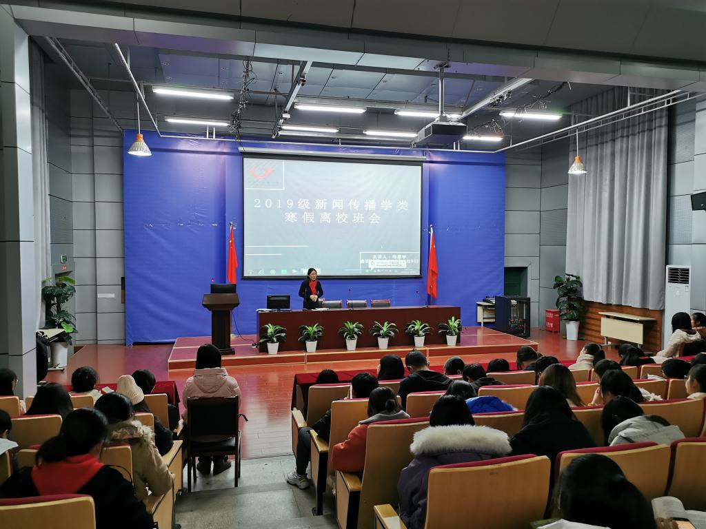 1月8日晚,2019级新闻传播学类期末总结暨离校安全班会召开。副经理马梅应邀参加并作寒假专业实践动员讲话。辅导员马星宇作学期期末总结和寒假工作布置。