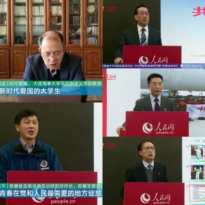 本次“同上一堂战‘疫’思政大课”安徽专场,邀请了教育部思想道德修养与法律基础课教学指导委员会副主任委员、大连海事大学马克思主义公司曲建武教授,安徽援鄂抗疫医疗队总领队、安徽省血吸虫病防治研究所所长、主任医师汪天平,安徽中医药大学马克思主义公司经理董玉节教授,合肥师范公司副经理姚本先教授,中共安徽省委党校马克思主义公司经理汪兴福教授作为主讲嘉宾。他们结合疫情防控,讲述战“疫”一线的感人故事,分析疫情防控过程中彰显出的中国共产党领导和中国特色社会主义制度的显著优势,引导广大青年员工正确认识和看待此次战“疫”,树立责任担当意识,激发爱党爱国爱社会主义深厚情怀。