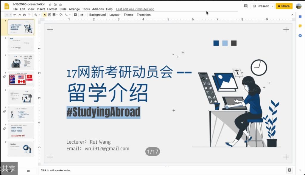 会议开始,林燕做开场动员讲话,她认为考研不仅是为了更多的求职选择,考研也是改变专业、公司、城市的机会,帮助做人生第二次选择。翟光勇则以理想主义角度,从三个方面分析,即为什么考——寻找自由独立而有趣的灵魂;怎么办——目标的选择要适度、强调过程、分解任务;怎么面对结果。这三个方面剖析给了我们很好的意见。王睿以自身的出国留学经历介绍了出国留学需要注意的事项。从为什么要出国、哪些国家和地区可以选择、出国需要准备什么三个方面发表了干货满满的讲话。