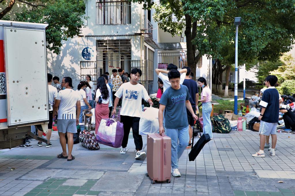 同学们将提前整理好的物品整齐、有序的搬迁。在场的辅导员们及时发现问题并对搬迁方案进行调整,促进搬迁工作高效率进行。同时,为确保搬迁安全有序,公司安排专人做好验收交接、搬离搬入等工作,实现了文明离寝、人走室净、有序搬迁、安全稳定的总体目标。