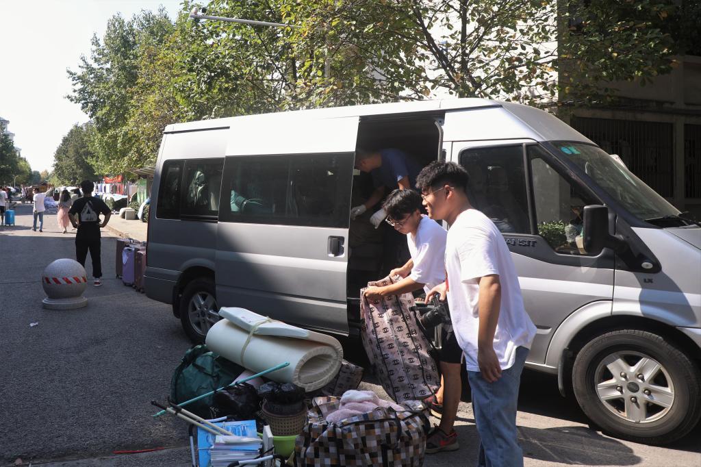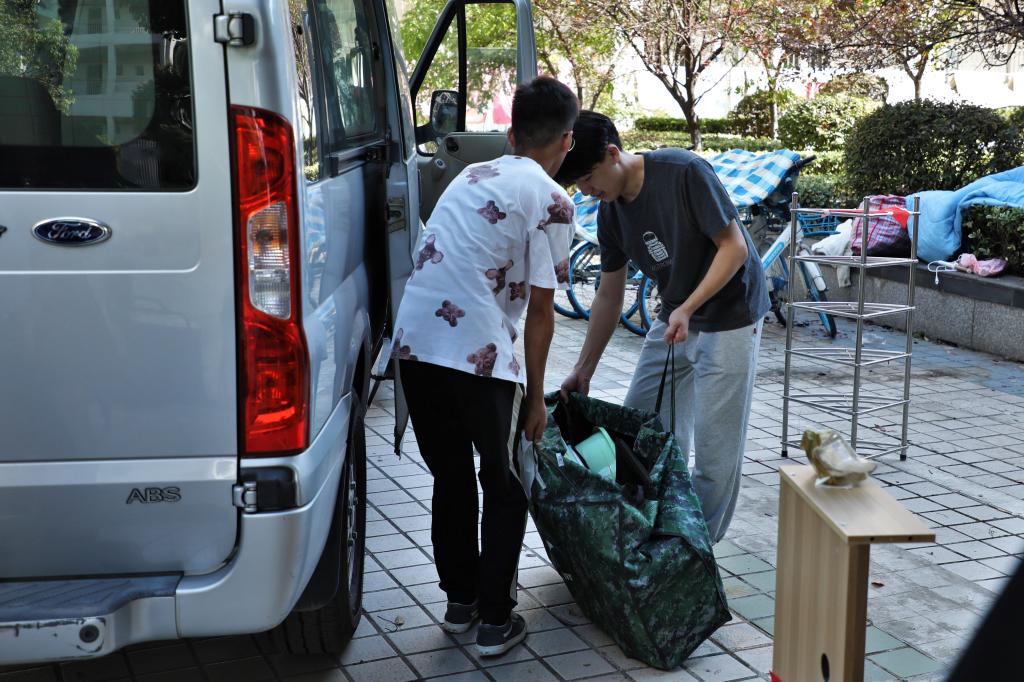 因运送车辆容量较大,员工每人打包速度不同,各班级采取男生志愿者帮助搬下楼运上车,女生自行商量是否参与此趟运送的方法。员工们互帮互助,让搬迁任务有条不紊的进行。