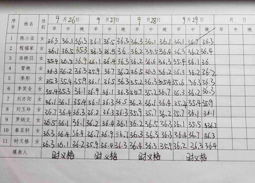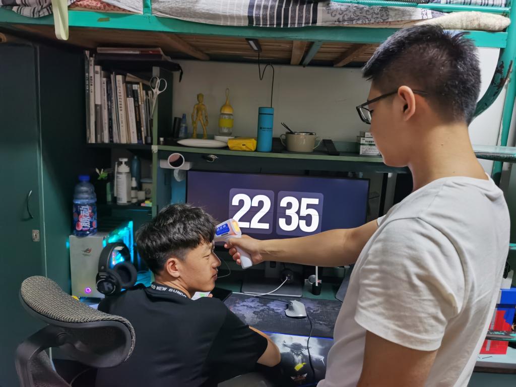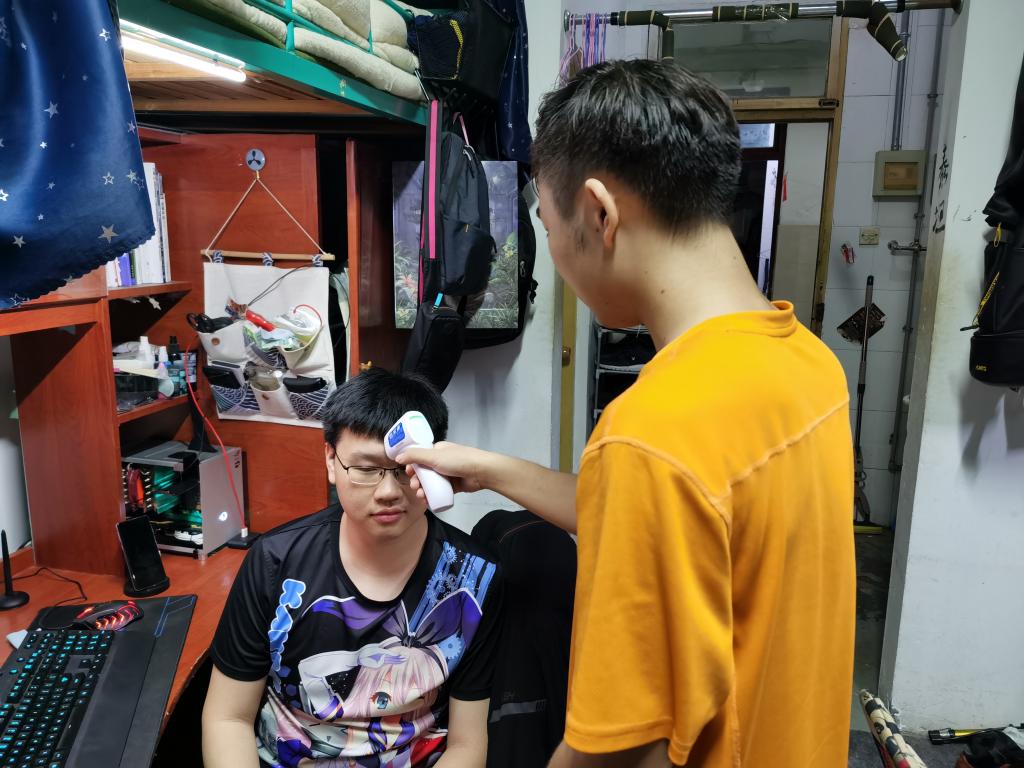 开展晨午晚检和宿舍安全检查。29日晚,辅导员张雁深入员工寝室,和员工干部一起进行了安全检查,排查宿舍安全隐患,对个别脏乱寝室进行批评教育并强制要求整改。同时,抽检了晨午晚检体温表,告知大家一定要配合班委做好测温工作。